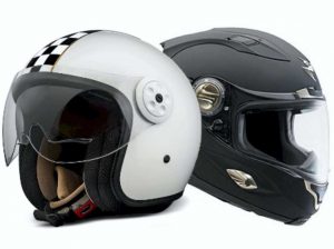 - Capacetes abertos, isto é, que não oferecem proteção para o queixo; esse tipo de capacete pode apresentar viseira ou não; os que não possuem a lei obriga a utilização de óculos de proteção; é um tipo de capacete indicado para que não pilota em vias de grande velocidade ou estradas;