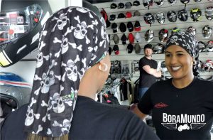 Este lenço em formato de tubo é a salvação da mulher motociclista. Ele é leve, fácil de lavar e secar, e ajuda a manter seu capacete limpo por dentro, já que não deixa seus cabelos em contado com o forro. A forma mais simples de usá-lo é colocando-o pela cabeça e só deixando seu rosto de fora.