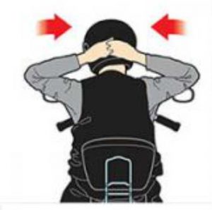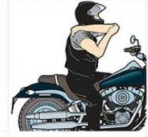 Estique a mão para frente, pegue nas costas dela, mantendo o cotovelo reto. Puxe para baixo e sinta a musculatura. No mesmo movimento você vai colocar a palma da mão para cima, vai puxar para baixo pela ponta dos dedos, sempre com o cotovelo reto.Isso serve para o ante braço esticar, uma musculatura que você usa bastante para aceleração e desaceleração da motocicleta. Faça isso dos dois lados