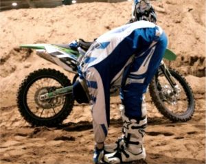 Sequência de warn-up (aquecimento) do competidor de motocross free style.
