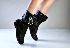“Piloto com bota de piloto, pois é o que sou quando estou na moto. Salto alto não tem nada à ver com motociclismo. A primeira coisa que fazemos ao cair é colocar o pé no chão, e uma boa bota fará toda a diferença nessa hora”